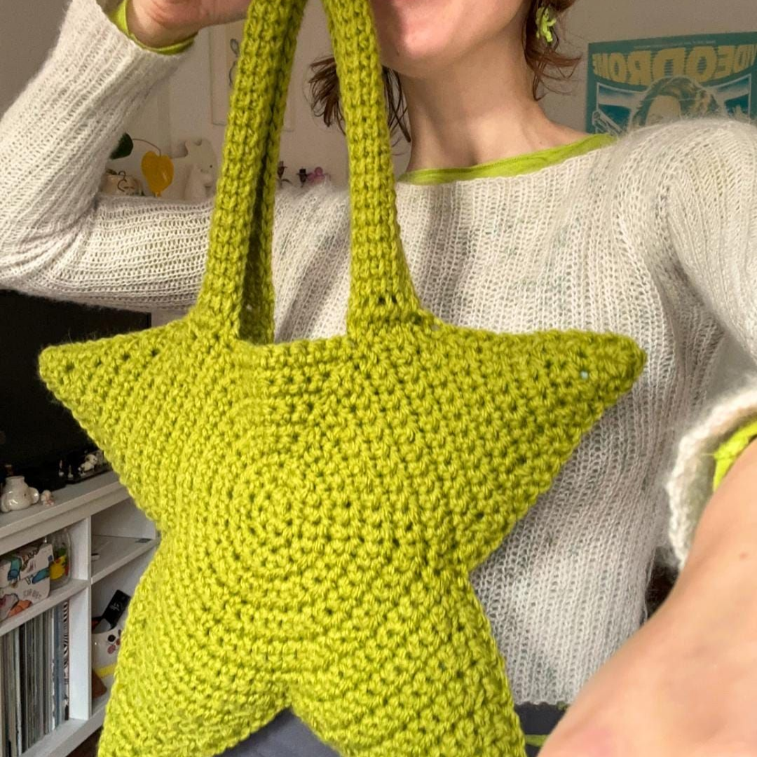 Logo comecei a testar fio de malha e fiz mais de 20 bolsas para presentear minha família no Natal. Depois disso, comecei a postar no TikTok, no Instagram e criei um grupo que cresceu muito rápido.
